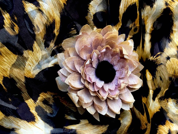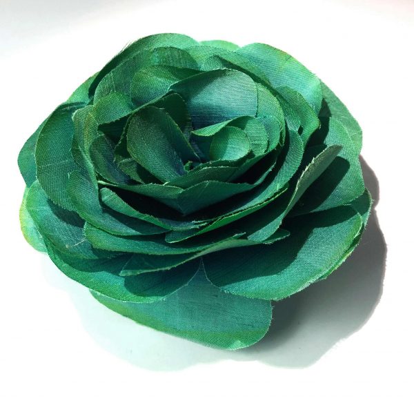 Flor realizada en seda tintada a mano con pistilos de seda peinada.