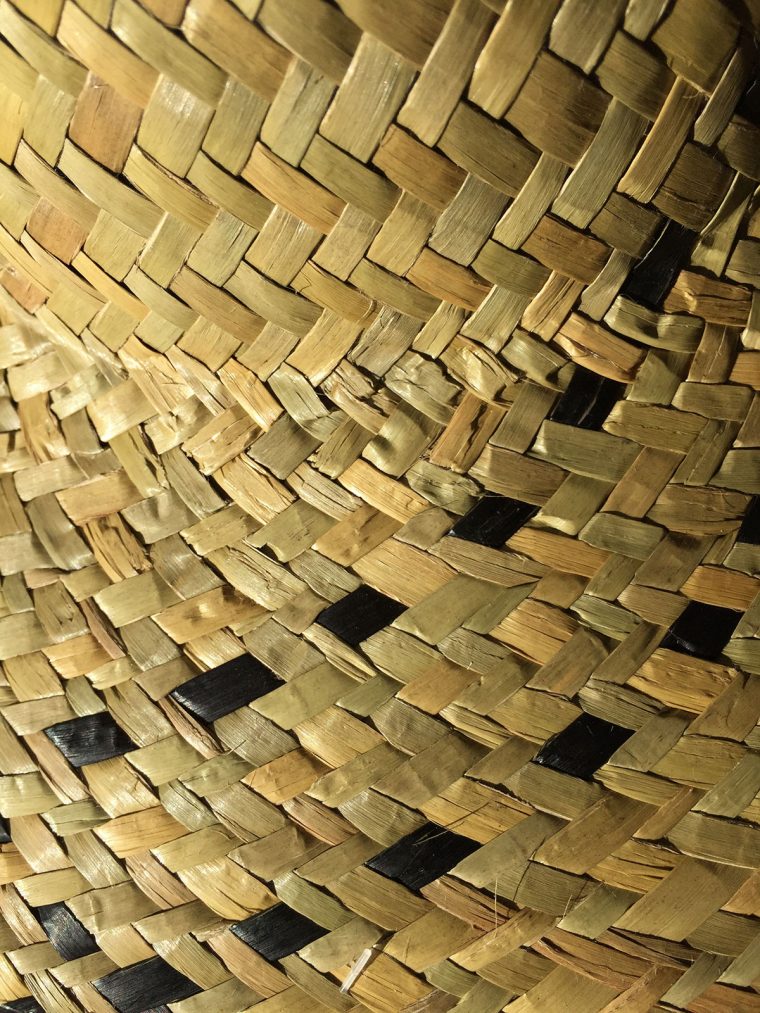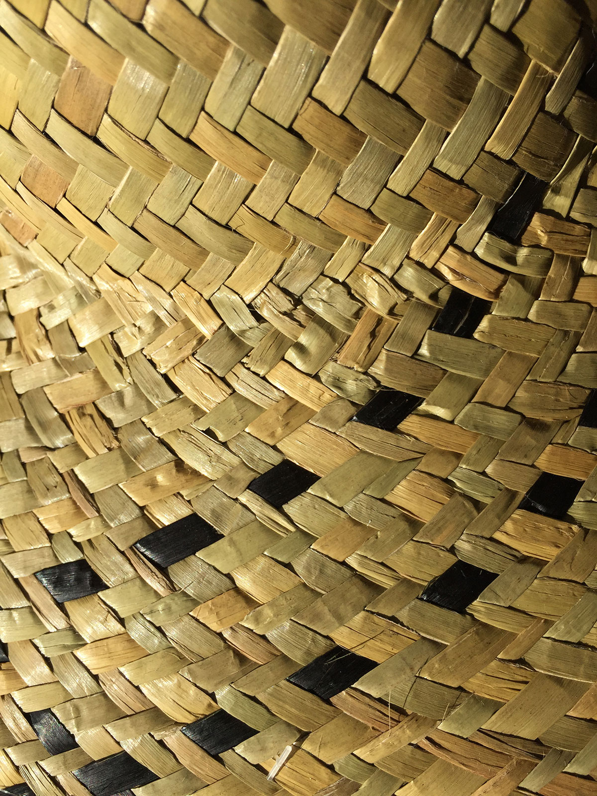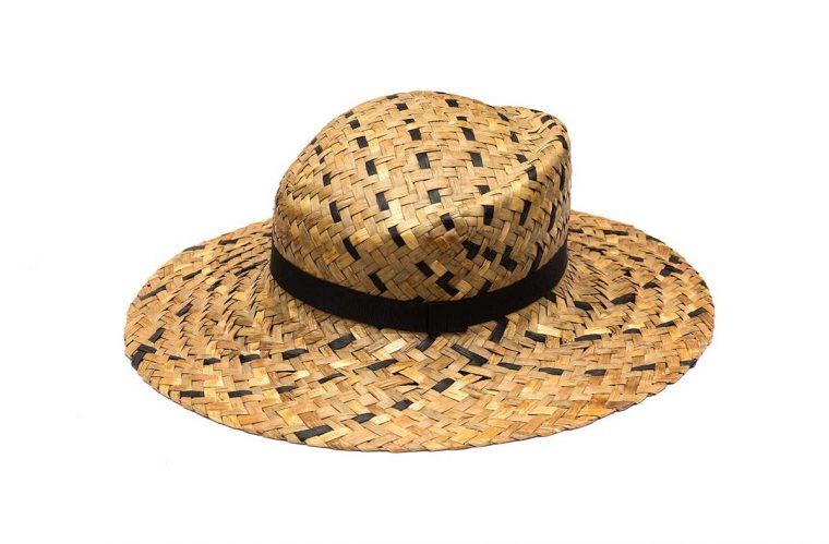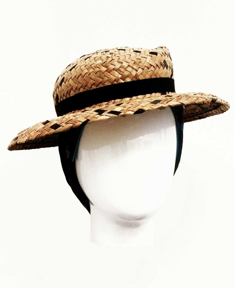 Pamela elaborada con paja trenzada con filo negra rematada con cinta grosgrain negra.