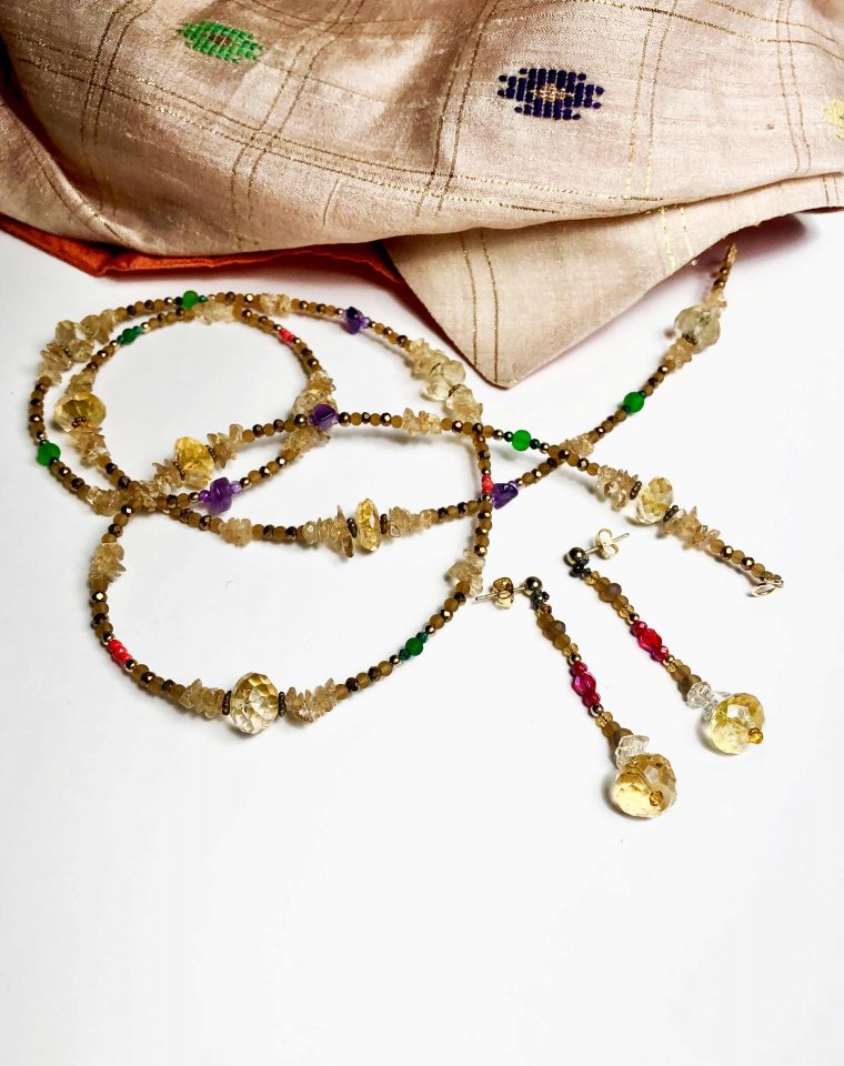 Citrinos, Amatista, Malaquita, metal y vidrios