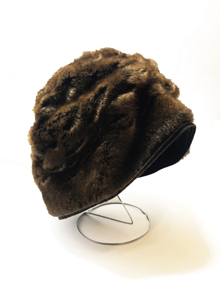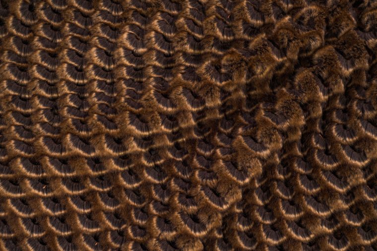 Capucha realizada en pelo sintético tipo visón, calado en forma de escamas, sin forrar.