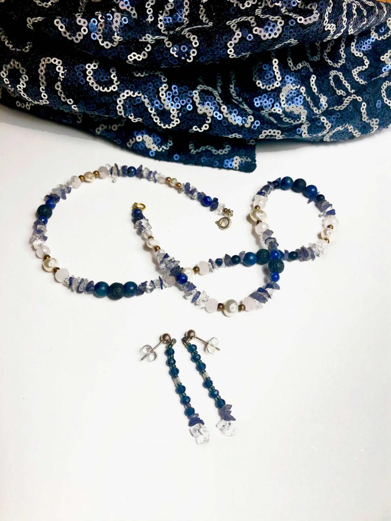 Perlas cultivadas, Cuarzo, Lava, Lapislázuli, Basalto y Plata.